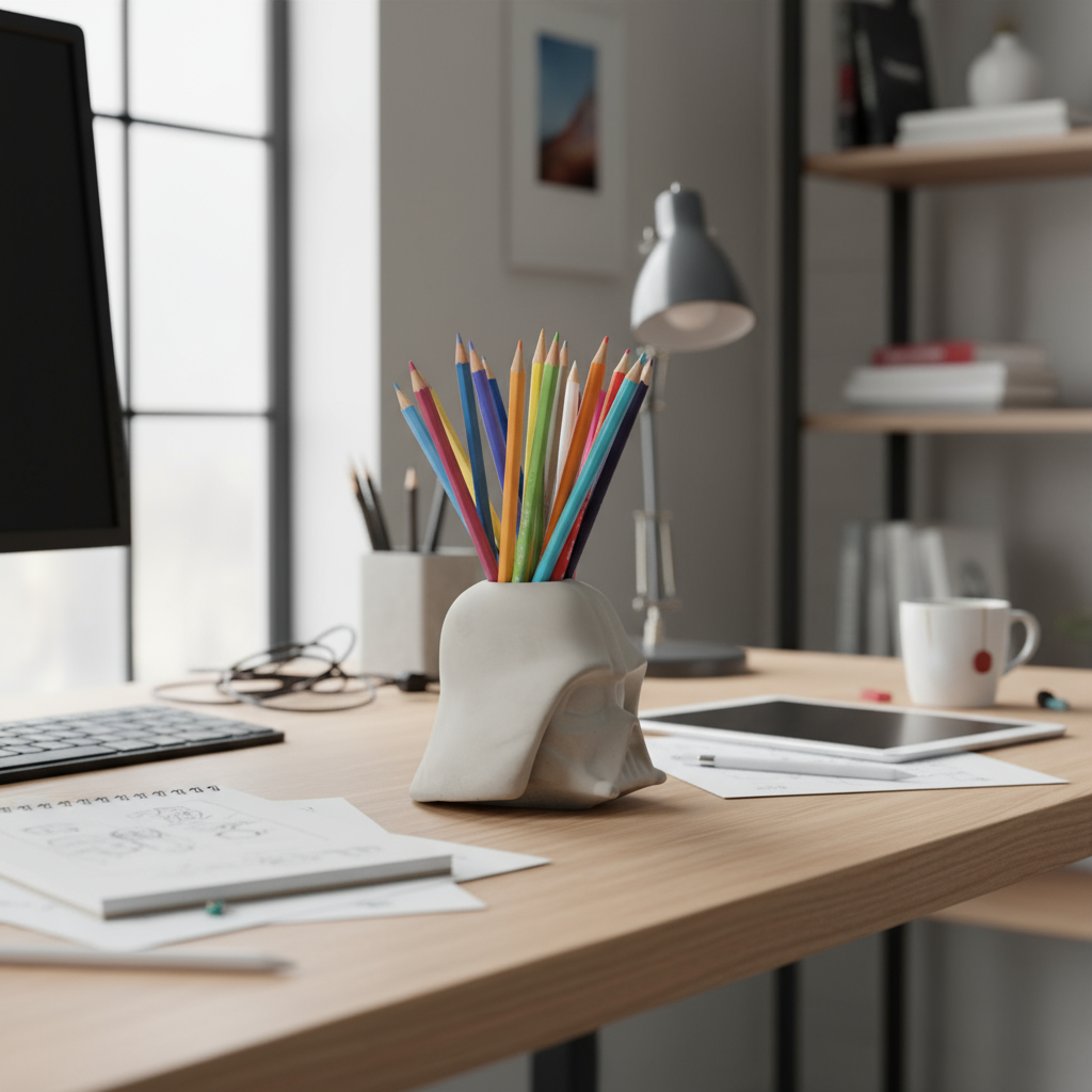 Lord Vader Star Wars handmade in concrete. Available in the perforated vase/pen holder version (with or without air plants) or unperforated for purist fans of the saga.