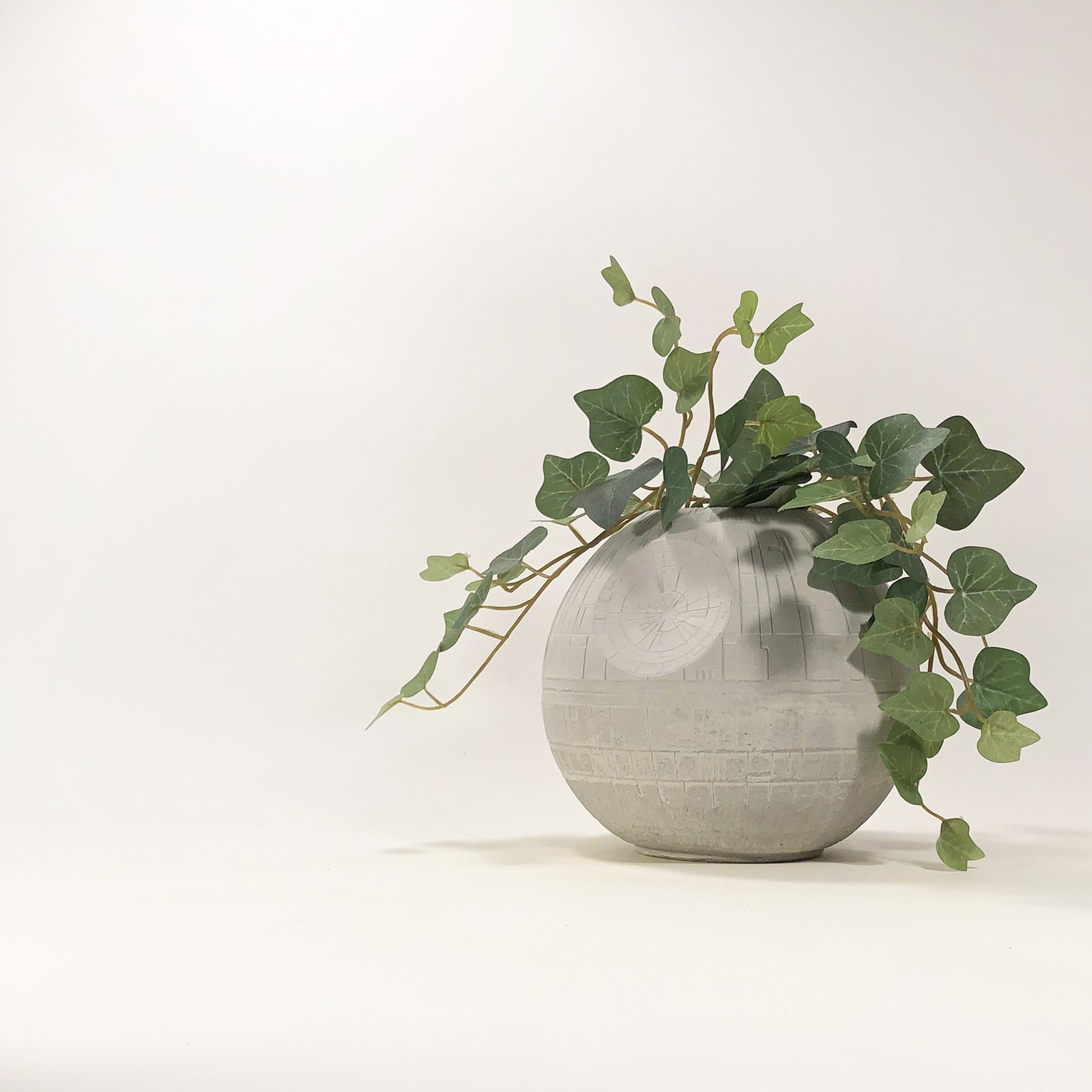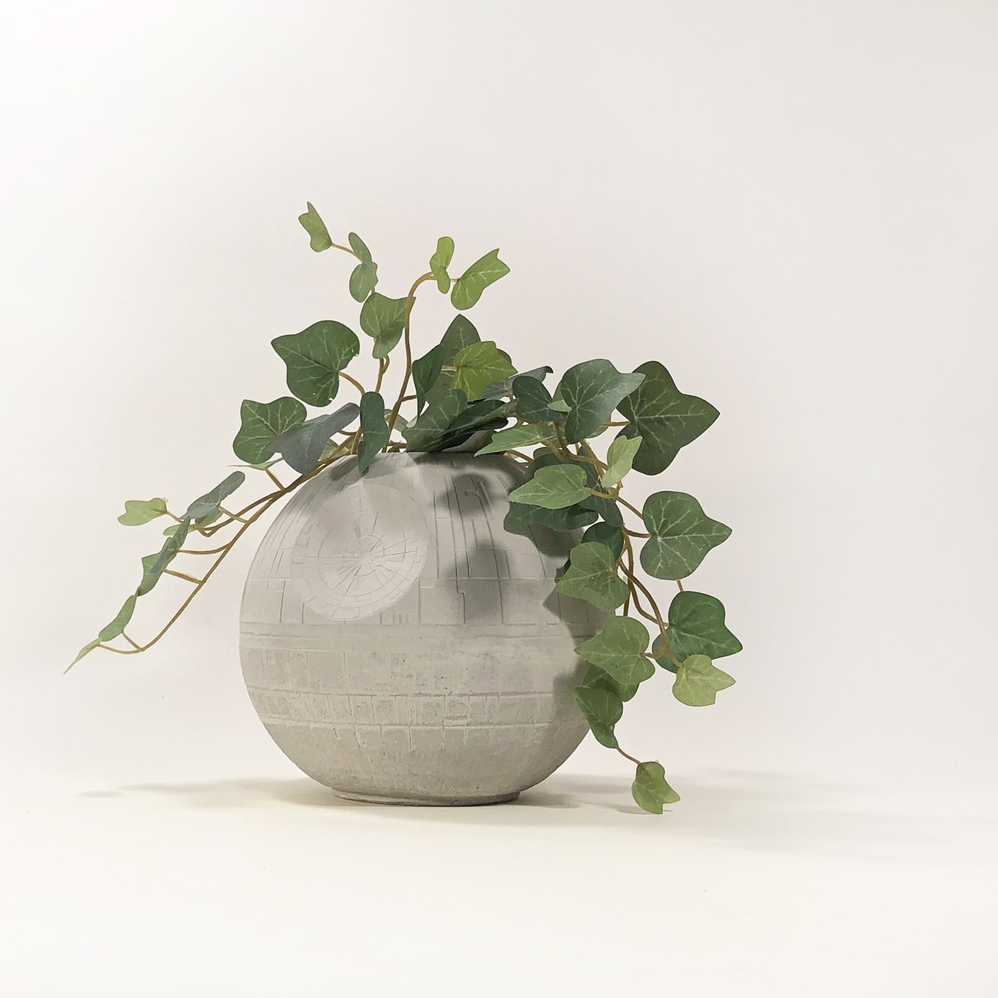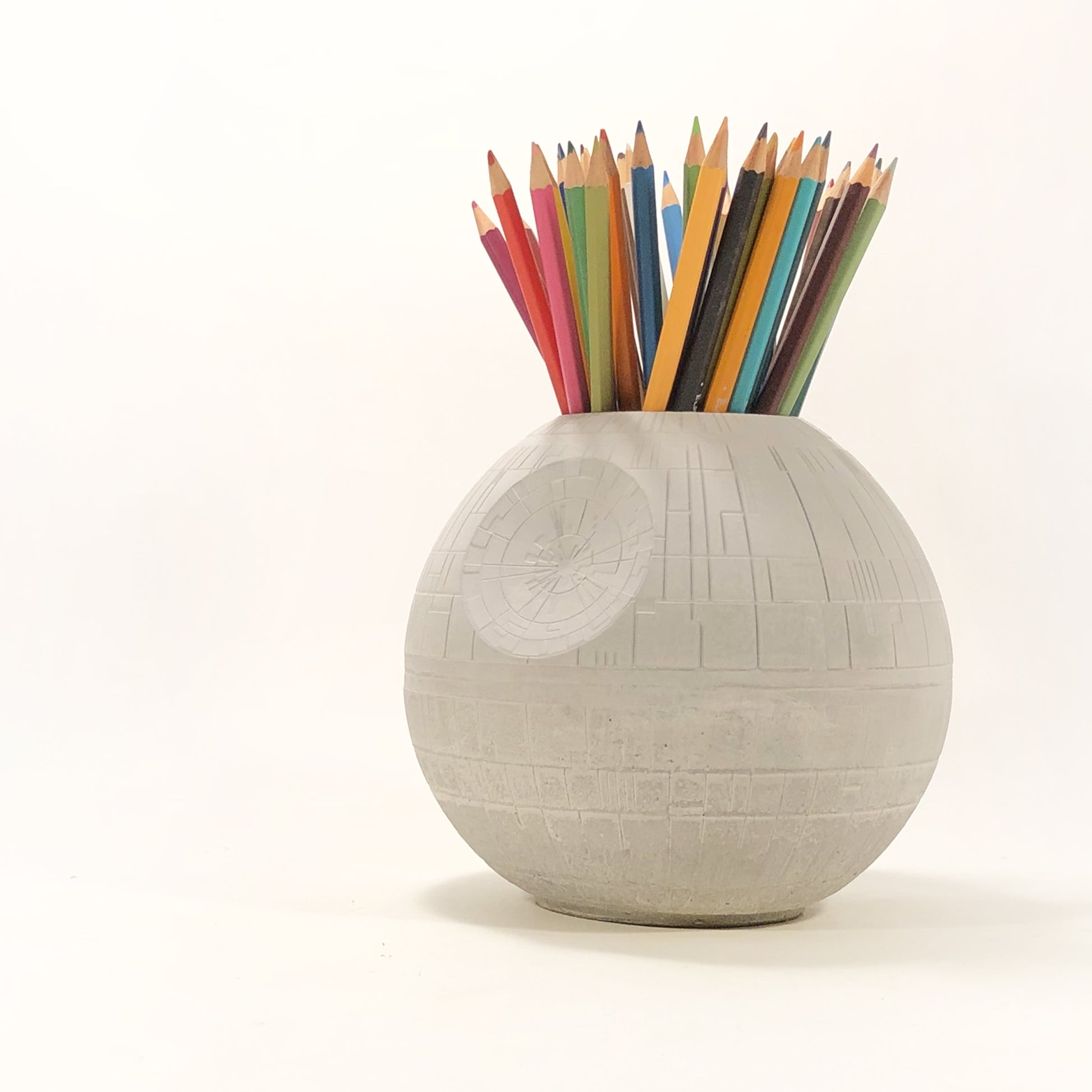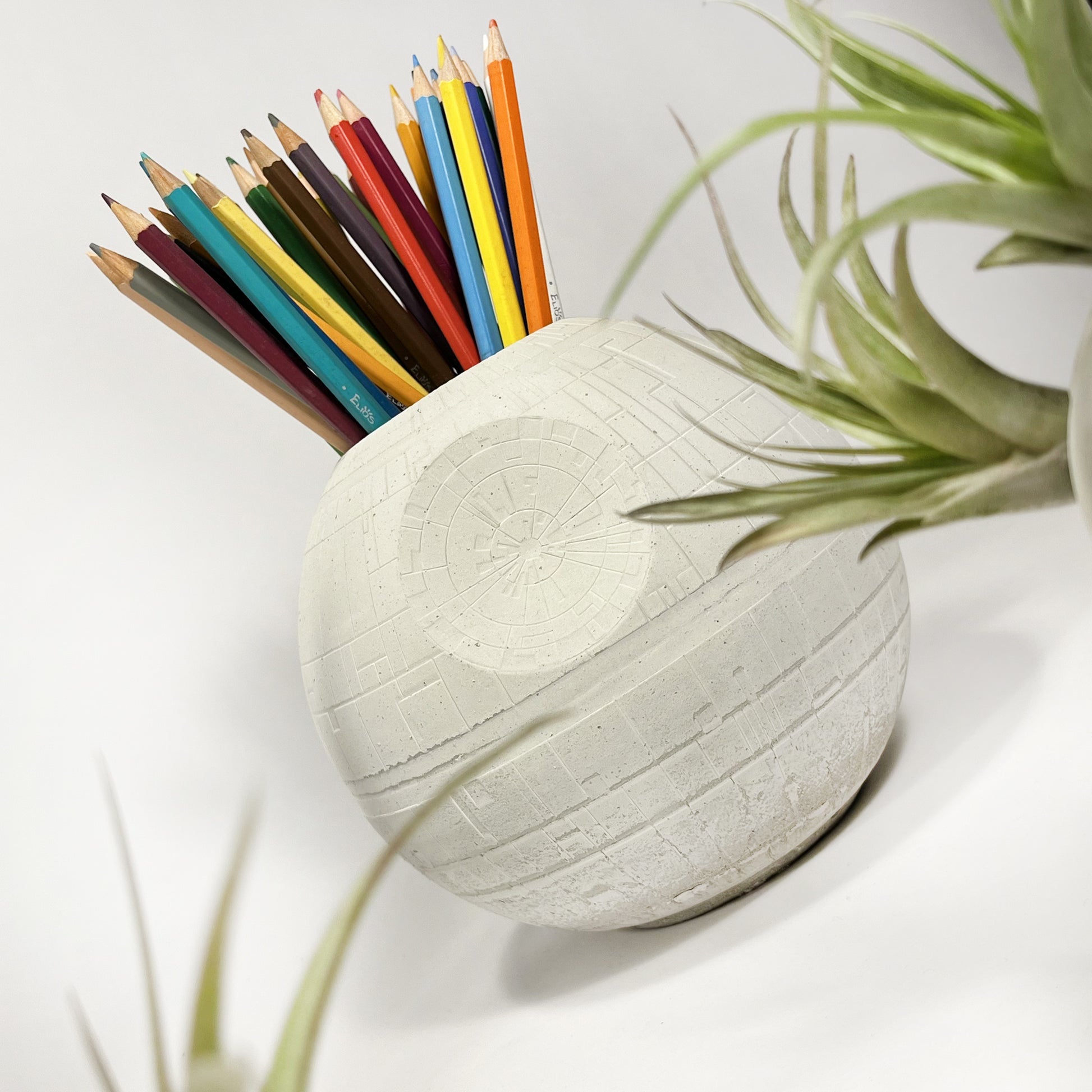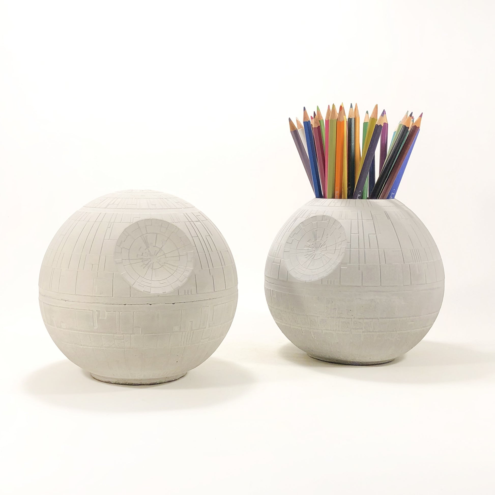 Death Star Morte Nera Star Wars in cemento realizzato a mano. Disponibile in versione forata vaso/portapenne o non forata per i puristi appassionati della saga.