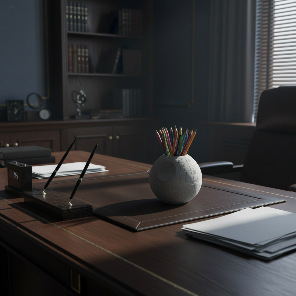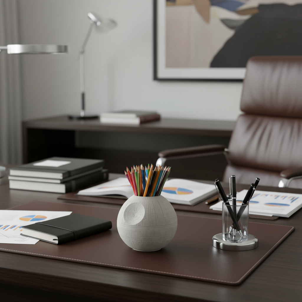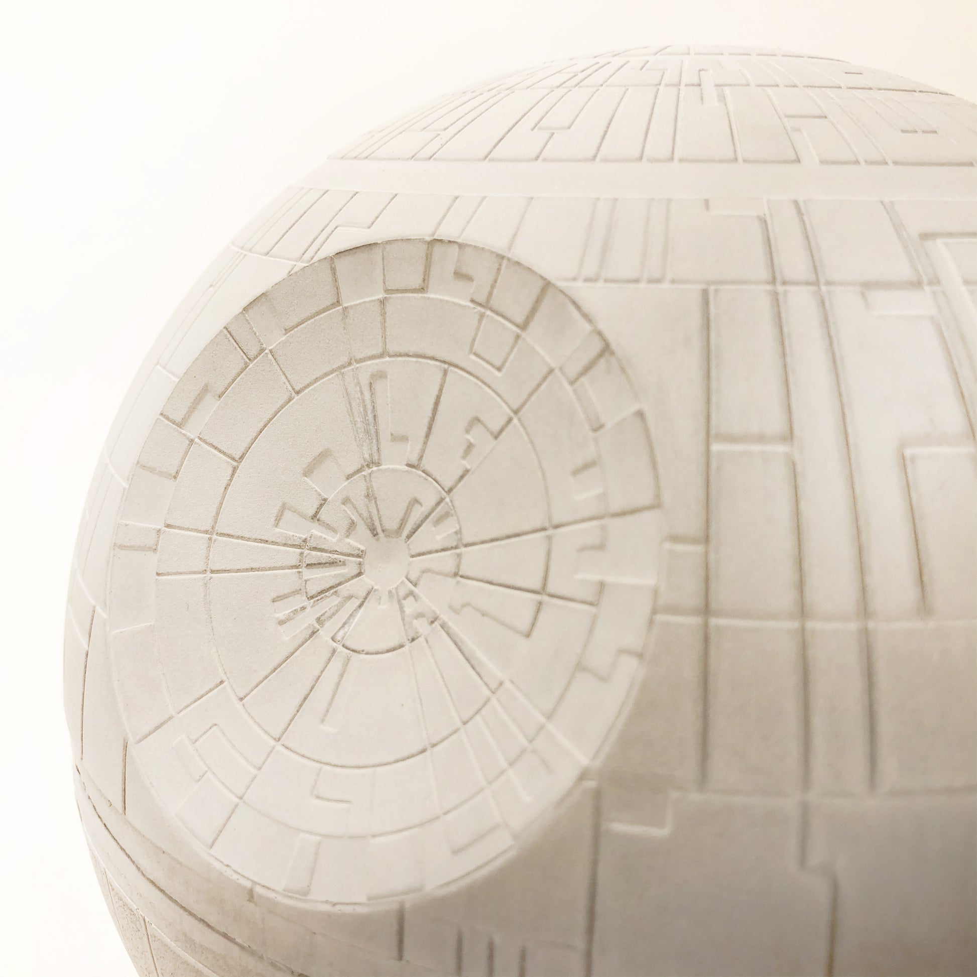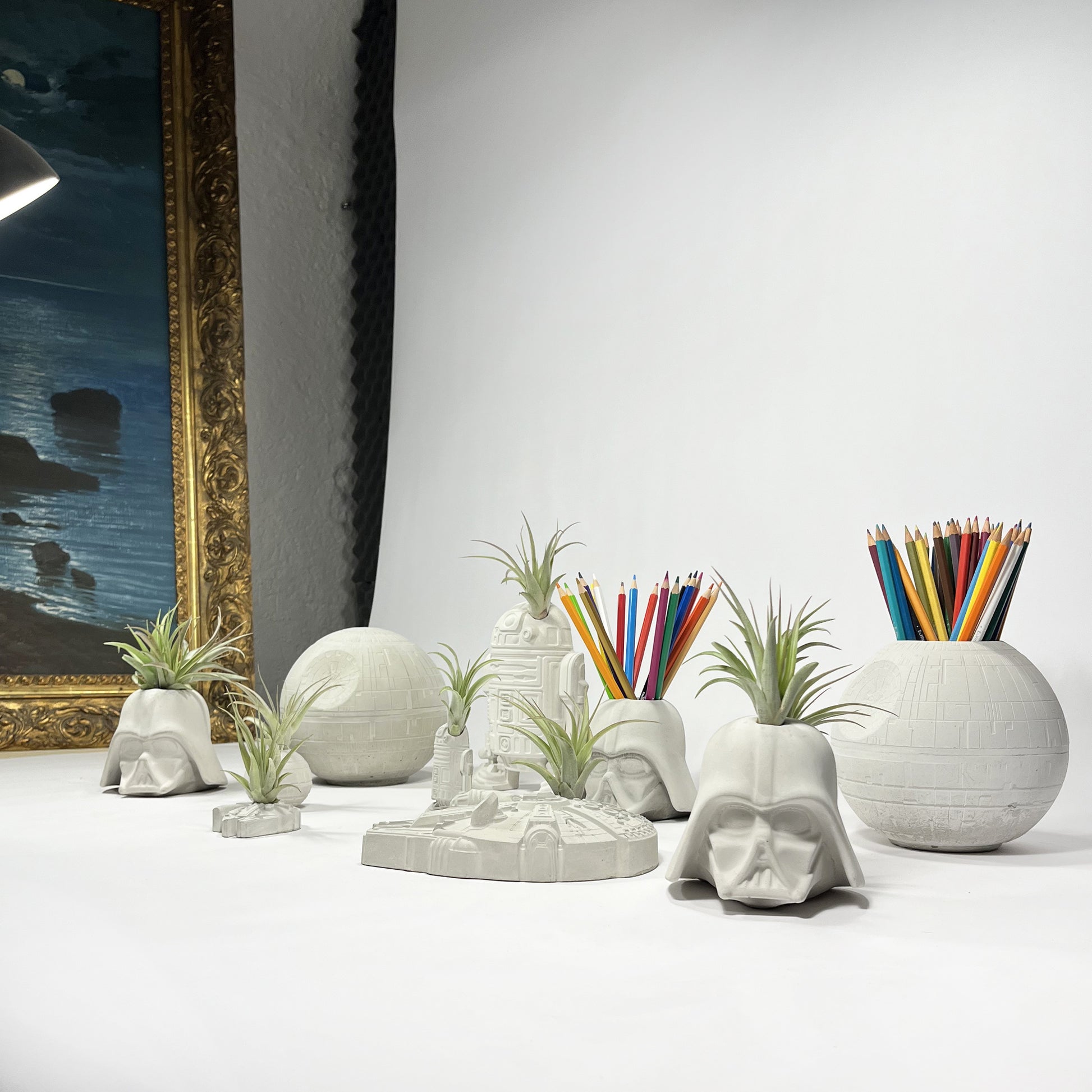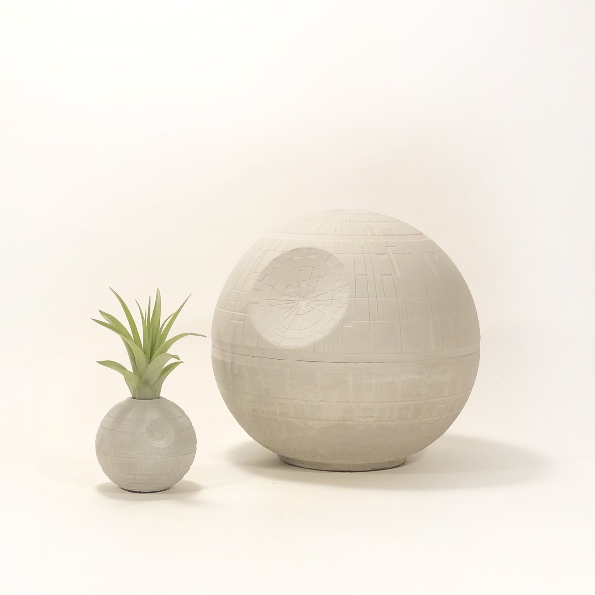 Death Star Morte Nera Star Wars in cemento realizzato a mano. Disponibile in versione forata vaso/portapenne o non forata per i puristi appassionati della saga.