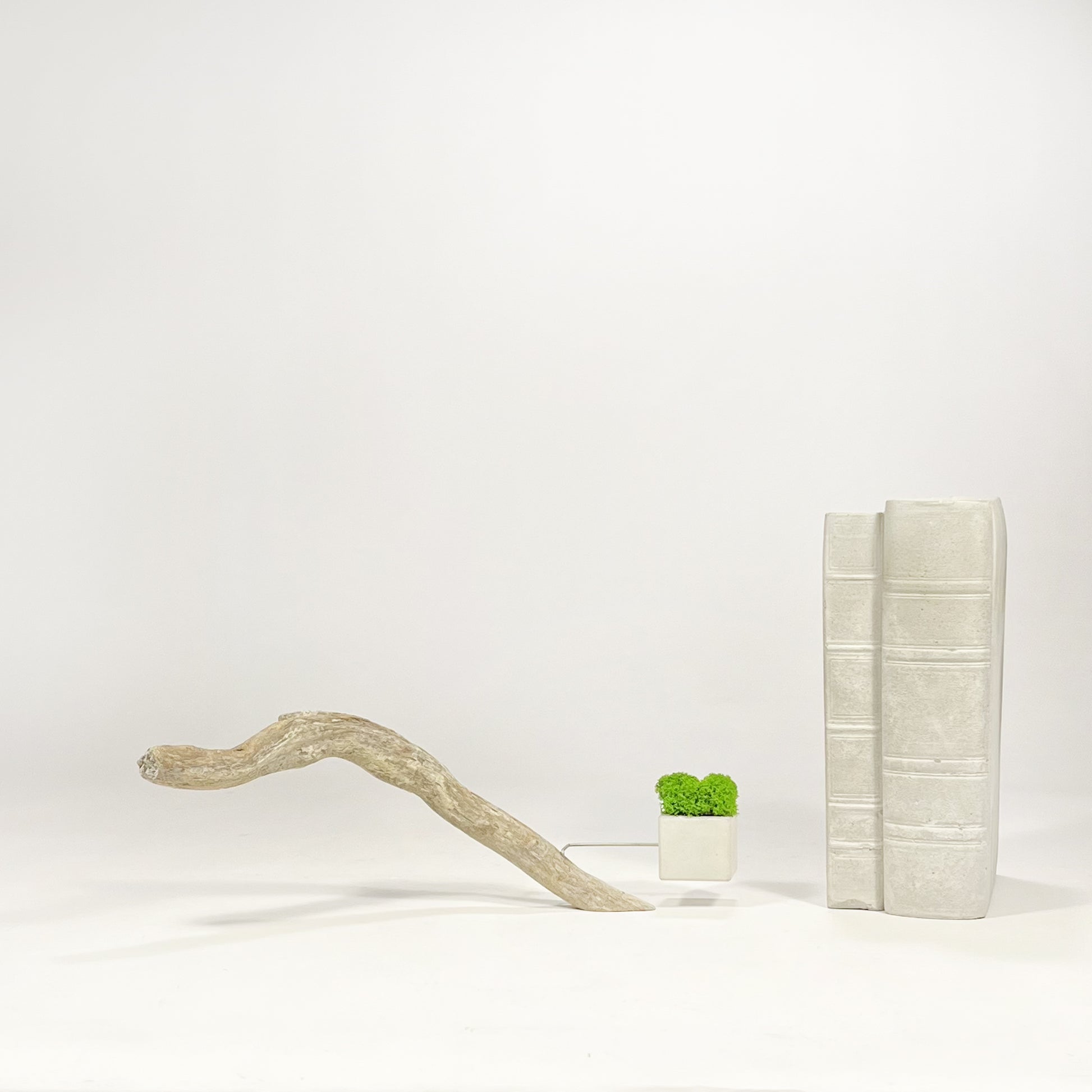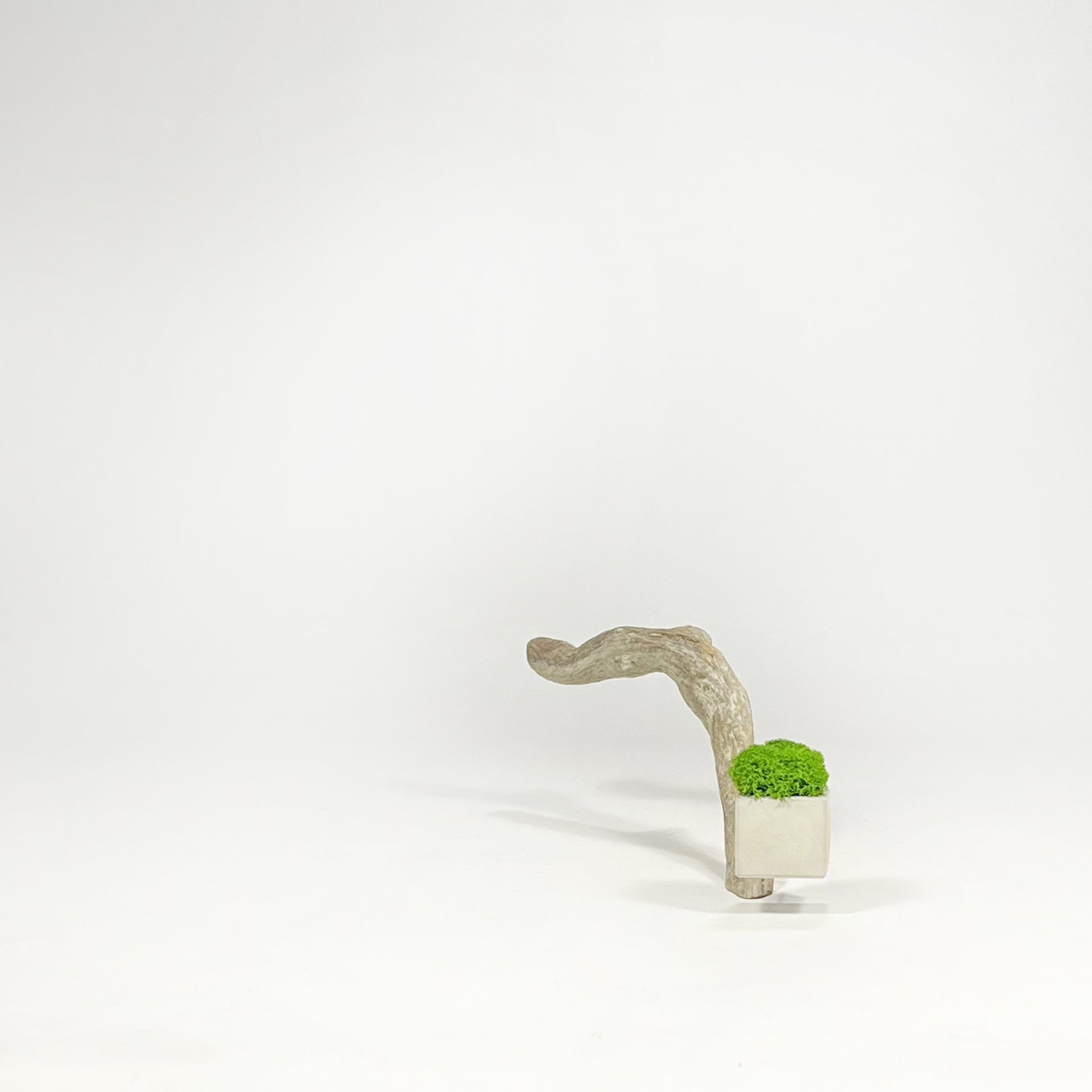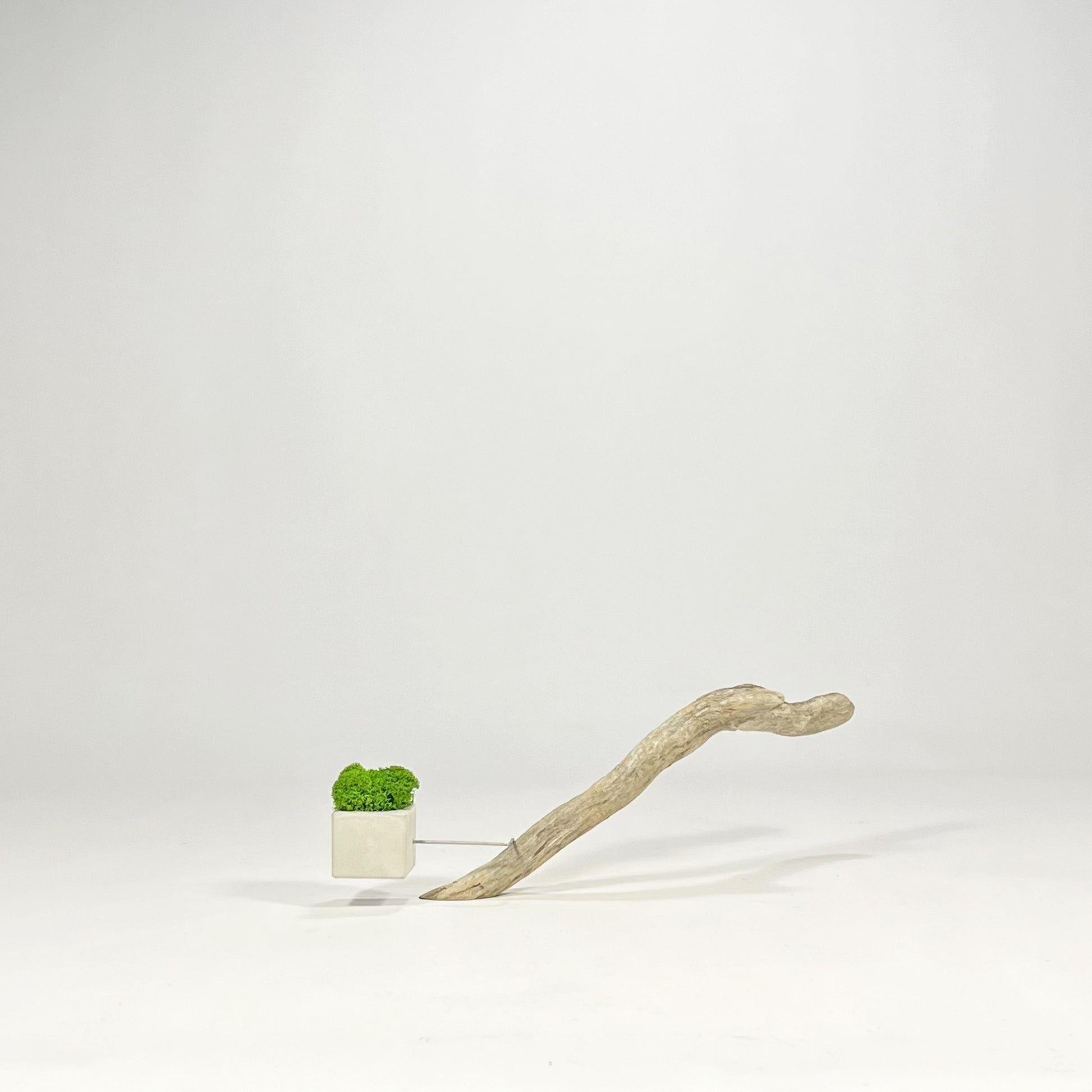 Legni di mare, acciaio, muschio stabilizzato (Moss) e forme geometriche in cemento fungono da rispettivi contrappesi in un gioco di equilibrio tra naturale ed artificiale dove a vincere è solo la forza di gravità.