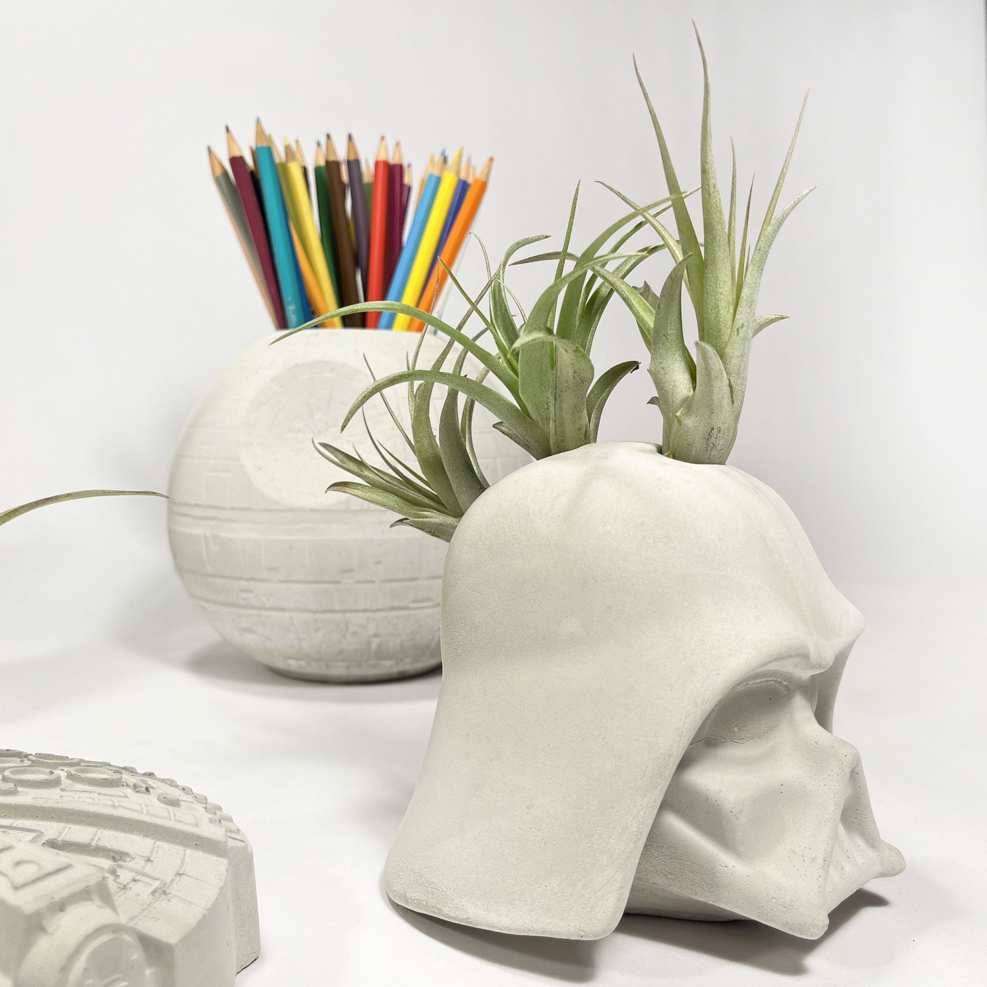 Lord Vader Star Wars in cemento realizzato a mano in versione Punk. Disponibile con o senza piante aeree.