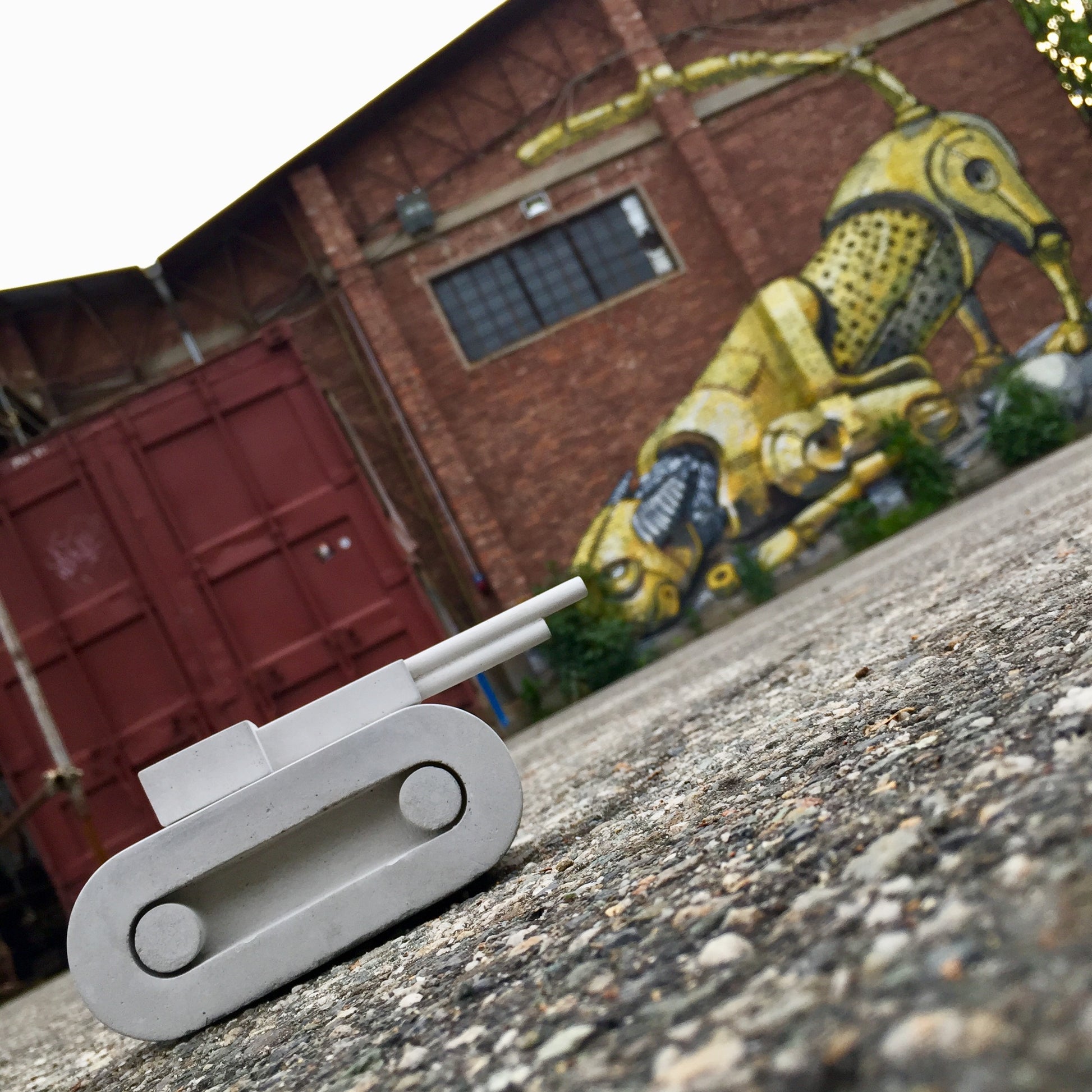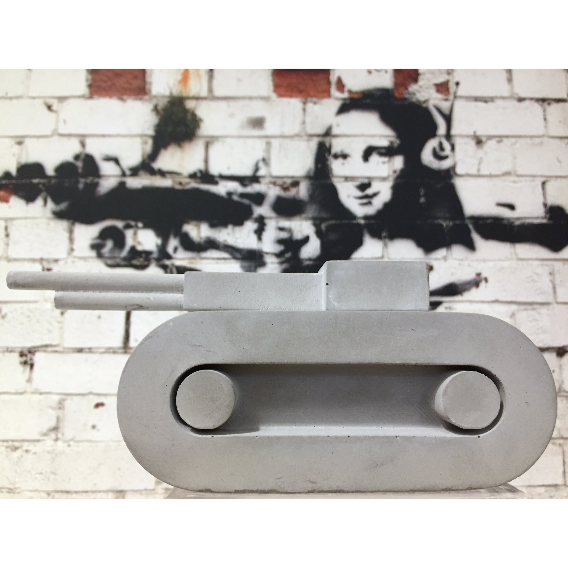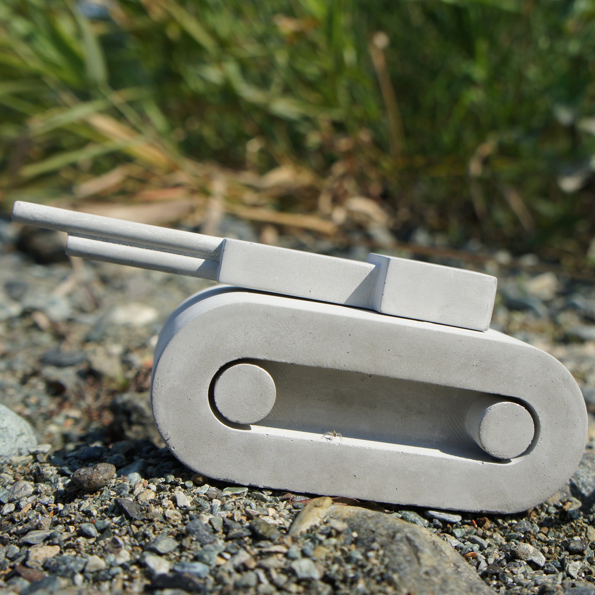 Tank you è il carro armato in vero cemento armato realizzato a mano. Un omaggio allo storico Risiko Tank dell’omonimo gioco. Può essere un ferma carte, un ferma porta, un ferma libri o semplicemente un’icona. Un pezzo d’arredo unico dal forte potere evocativo a cui dedicare lo spazio che merita.