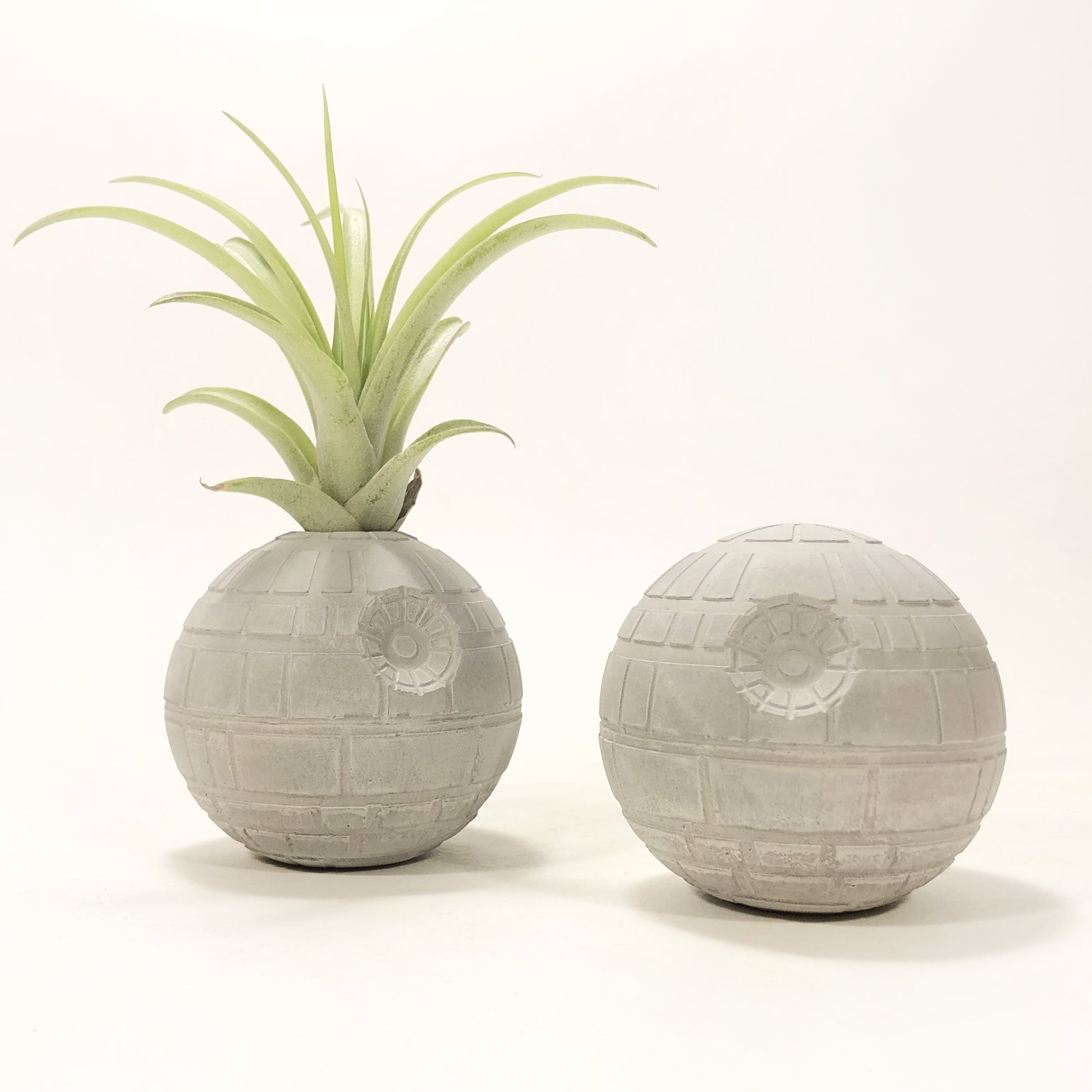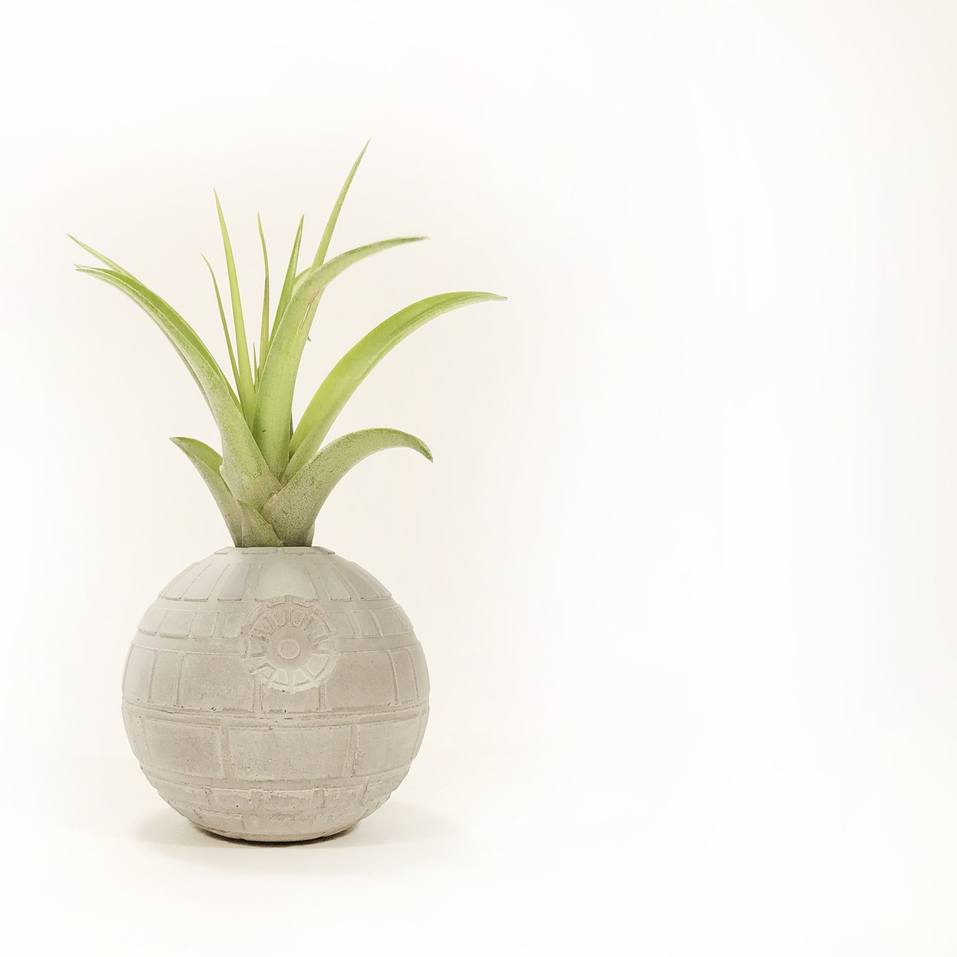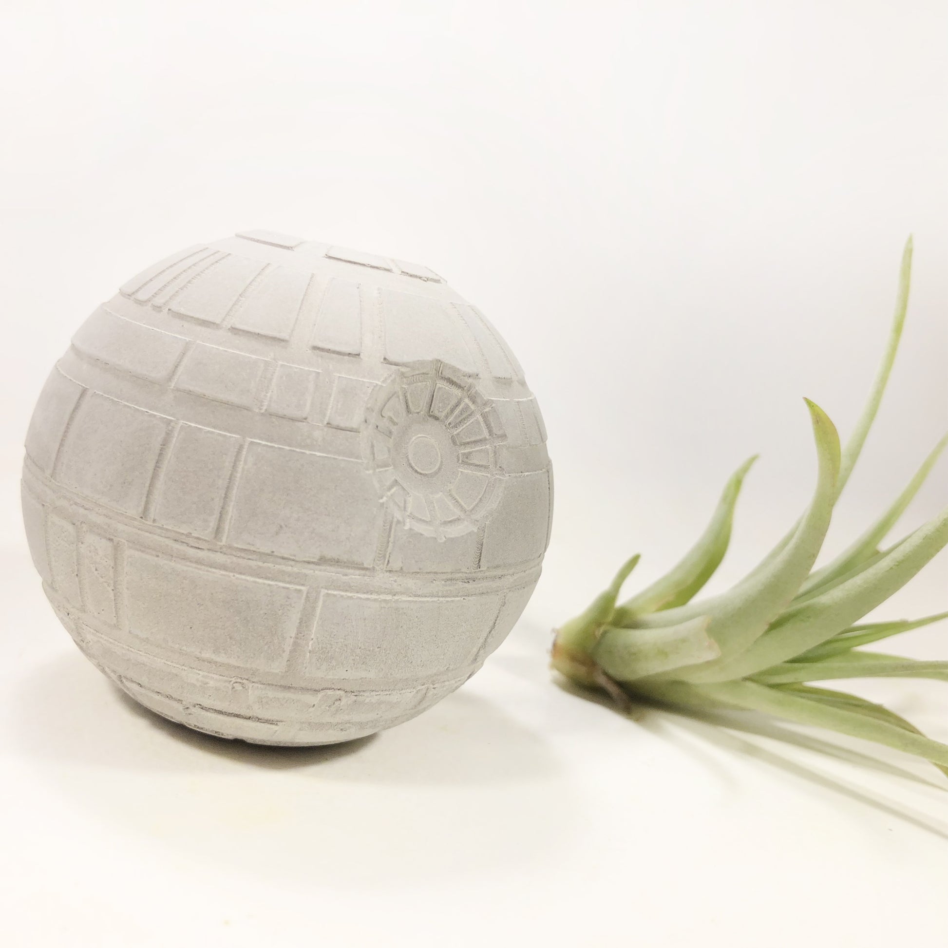 Death Star Morte Nera Star Wars Piccola in cemento realizzata a mano. Minifigure vaso per piante aeree (Tillandsia). Disponibile anche non forata per i puristi appassionati della saga.