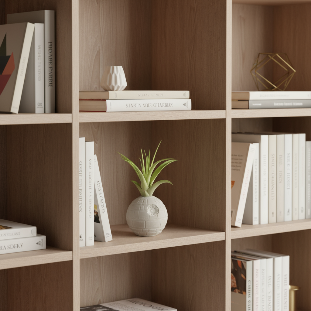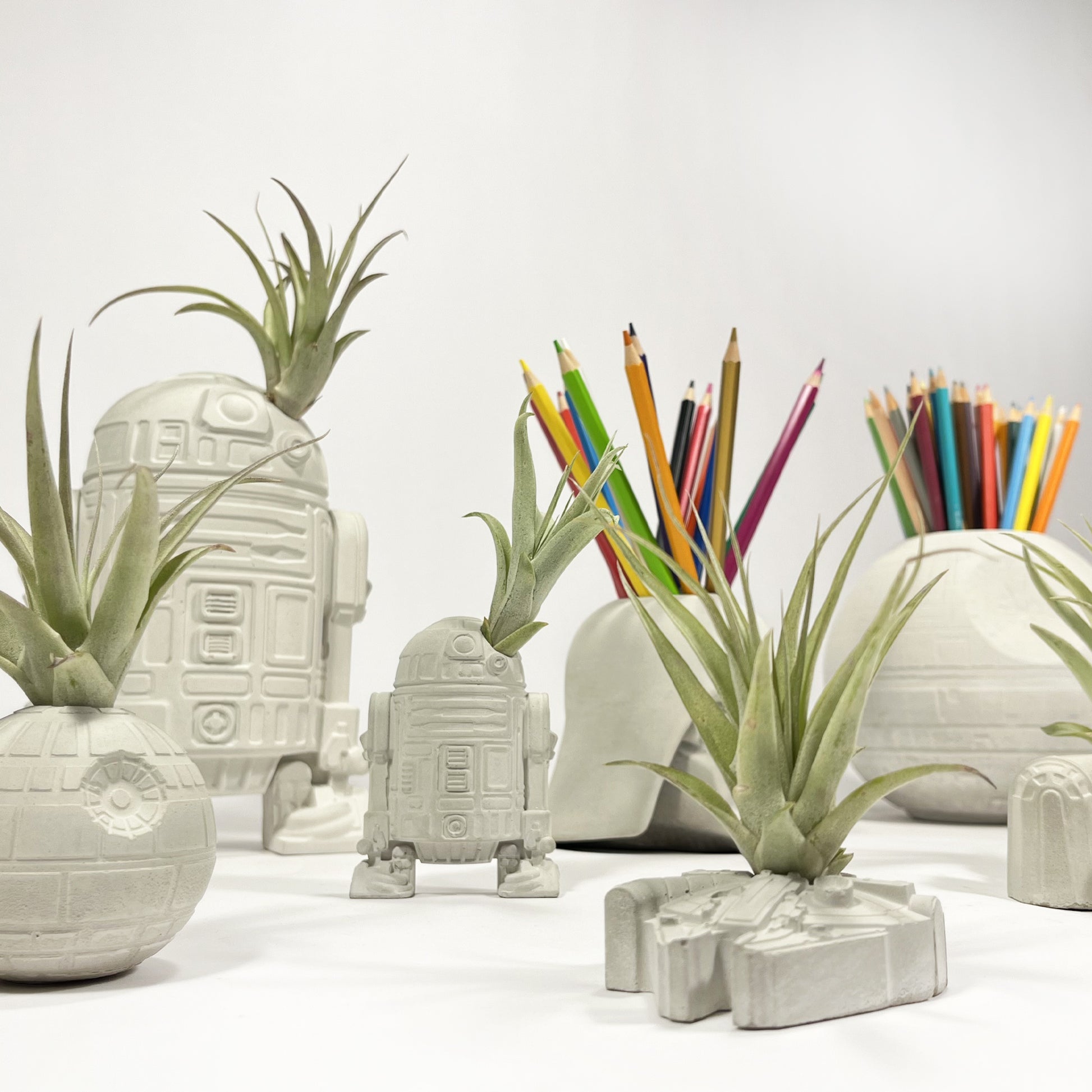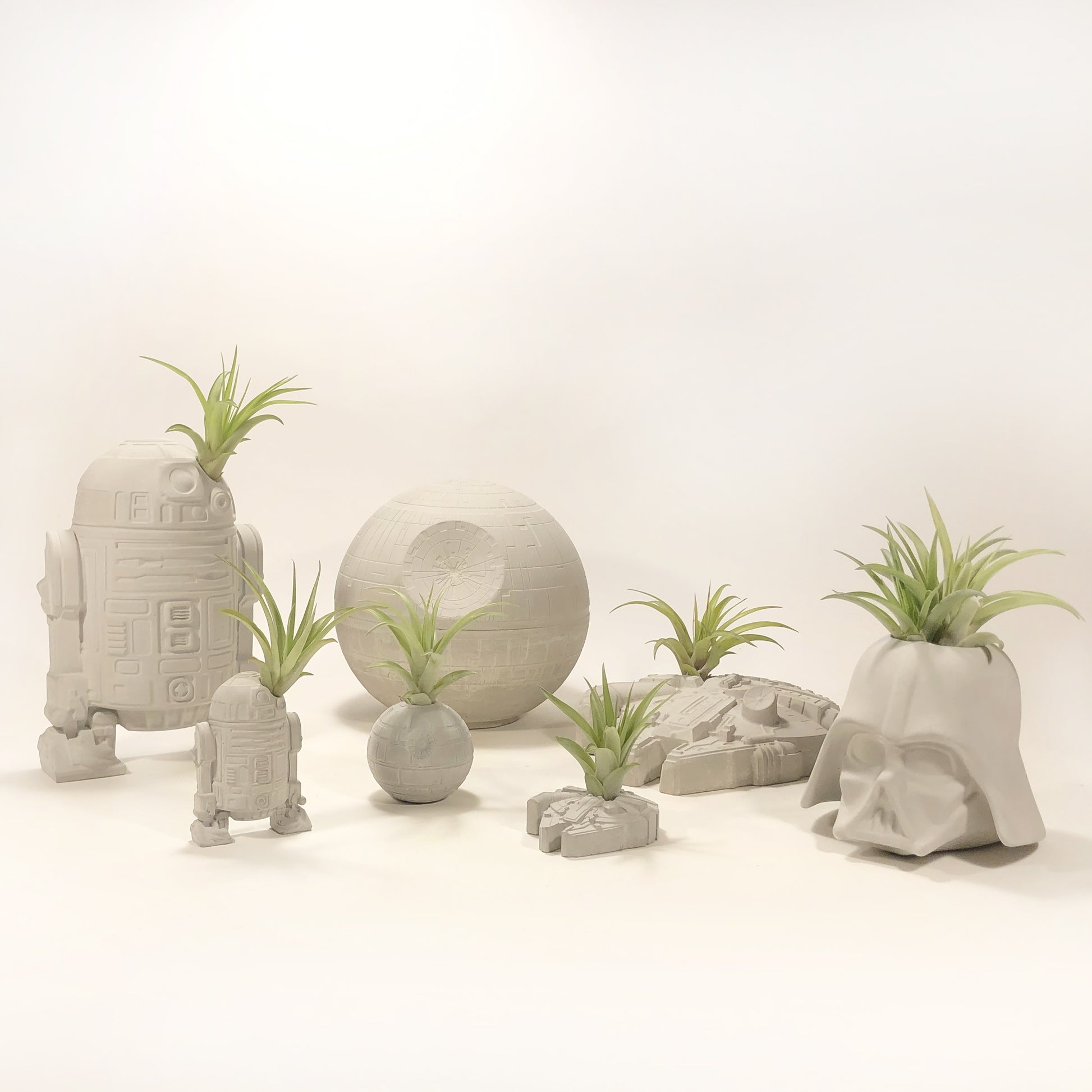 Death Star Morte Nera Star Wars Piccola in cemento realizzata a mano. Minifigure vaso per piante aeree (Tillandsia). Disponibile anche non forata per i puristi appassionati della saga.